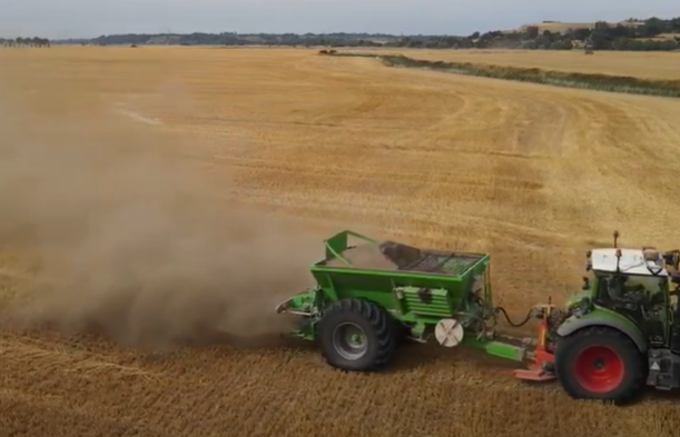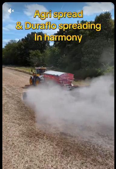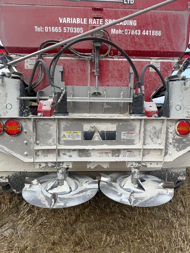 T D Boxall Agricultural contracting using Duraflo discs and vanes to spread P-Grow fertiliser in Kent